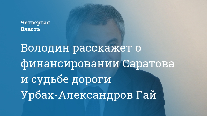 Володин расскажет о финансировании Саратова и судьбе дороги Урбах-Александров Гай