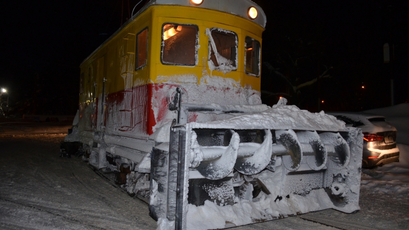 Обездвиженный снегом трамвайный маршрут №5 остается под двухметровыми сугробами