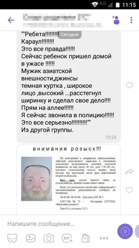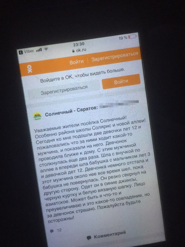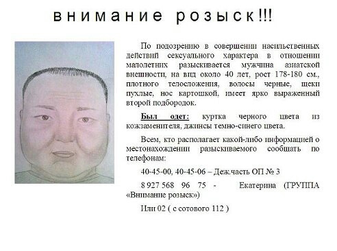 Между тем, в группе «Солнечный Саратов» в соцсети «ВКонтакте» распространили ряд фотографий с места задержания, а также ориентировку. В ней сказано, что «по подозрению в совершении насильственных действий сексуального характера в отношении малолетних разыскивается мужчина азиатской внешности, на вид около 40 лет, рост 178-180 см, плотного телосложения, волосы черные, щеки пухлые, нос картошкой, имеет ярко выраженный второй подбородок».