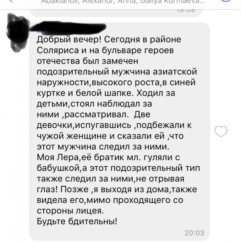 Кроме того, опубликованы переписки родителей, обеспокоенных появлением негодяя, который якобы расстегивал ширинку и совершал извращенные действия. Так, инциденты были на улице Мысникова, бульваре Героев Отечества, в районе школы «Солярис». Добавим, что поимка похожего человека состоялась как раз на Героев Отечества.