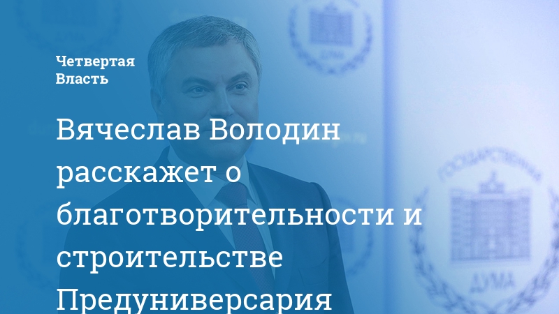 Вячеслав Володин расскажет о благотворительности и строительстве Предуниверсария