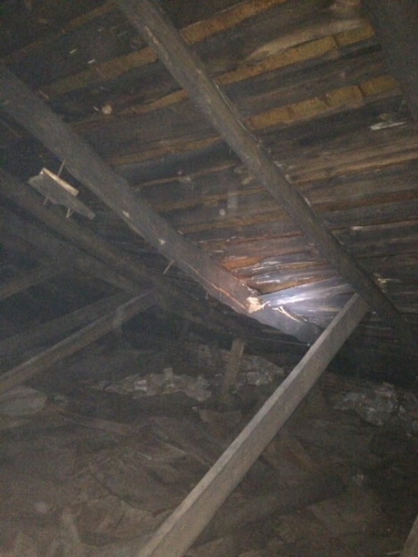 Речь идет о доме №19 по улице Киселева. Пользователь Дмитрий Кирьянов выложил запись с фотографиями кровельных перекрытий на чердаке здания. Судя по всему, под тяжестью снега деревянные перекрытия значительно просели, и кровля вот-вот может обрушиться.