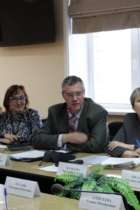 К присутствующим с приветственным словом от директора института, д.и.н., профессора Сергея Наумова обратилась декан факультета дополнительного профессионального образования, д.э.н., профессор Галина Семенова: «Сегодня мы обсуждаем важный круг вопросов федерального проекта «Старшее поколение» национального проекта «Демография». Определяя стратегию взаимодействия структур региона, координирующих реализацию проекта между образовательными организациями и предприятиями, важно найти технологии и формат обучения граждан предпенсионного возраста, обеспечивающий эффективный результат программных мероприятий».