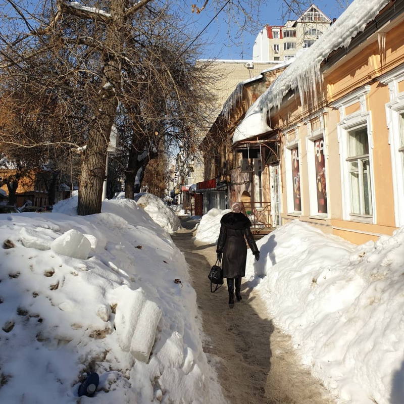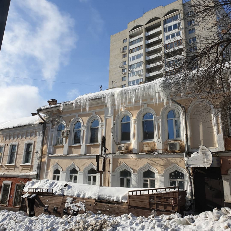 Билык опубликовал три снимка с изображением саратовских домов, на которых повисли огромные сосульки, а также узкой тропкой на тротуаре. Примечательно, что на одном из фото изображено здание, соседствующее с администрацией Волжского района.