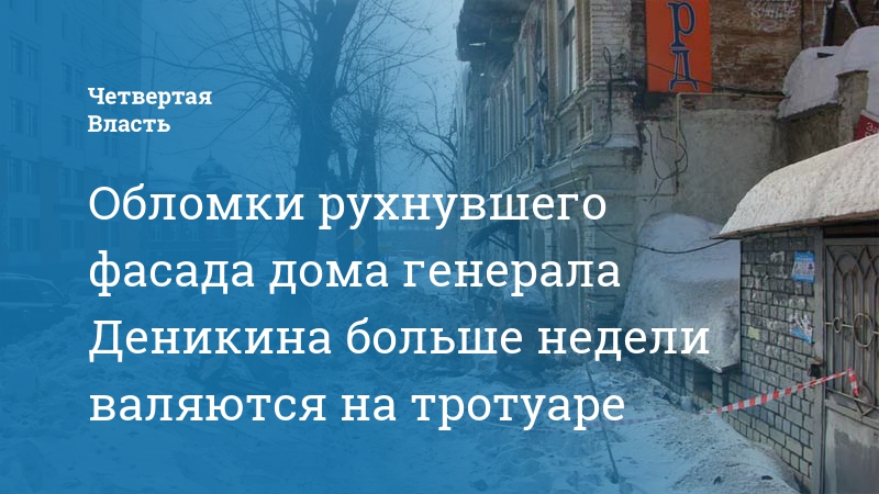 Обломки рухнувшего фасада дома генерала Деникина больше недели валяются на тротуаре
