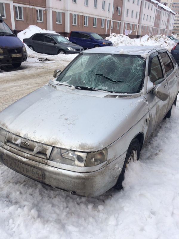Указано, что инцидент произошел возле дома №100 по улице Долгорукова (Железнодорожный район, микрорайон Шуист). По имеющимся данным, снег со льдом свалился с крыши трехэтажки и угодил на автомобиль «ВАЗ-2112» с саратовскими госномерами. На заднем стекле имеется наклейка с указанием сообщества автолюбителей и названия города Ртищево (автор фотографий и сам является его жителем).
