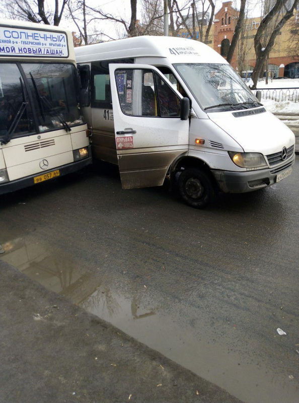 По предварительным сведениям, автобус «Мерседес» маршрута №53 находился возле остановочного пункта «Губернский рынок», производилась посадка/высадка пассажиров. В тот момент, когда водитель начал движение, внезапно перед ним с левой стороны вырулил микроавтобус «Мерседес» маршрута №41. В итоге большой автобус зеркалом врезался в окно маршрутки.