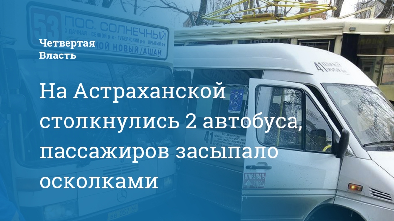 На Астраханской столкнулись 2 автобуса, пассажиров засыпало осколками