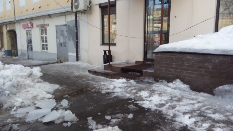 В центре Саратова на женщину с крыши свалилась глыба льда