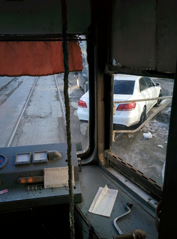 По их данным, трамваи встали около 16.20 на улице Слонова. Очевидцы сфотографировали "Мерседес" Е-класса, который мешает проезду. На снимке видно: транспорт поставили таким образом, что его задняя часть находится на небольшом расстоянии от рельсов.