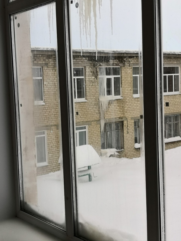 Чумбаев уточнил, что снег недавно счищали, но полностью убрать его со здания не получается – наледь остается, и потом при таянии вода начинает протекать внутрь школы.