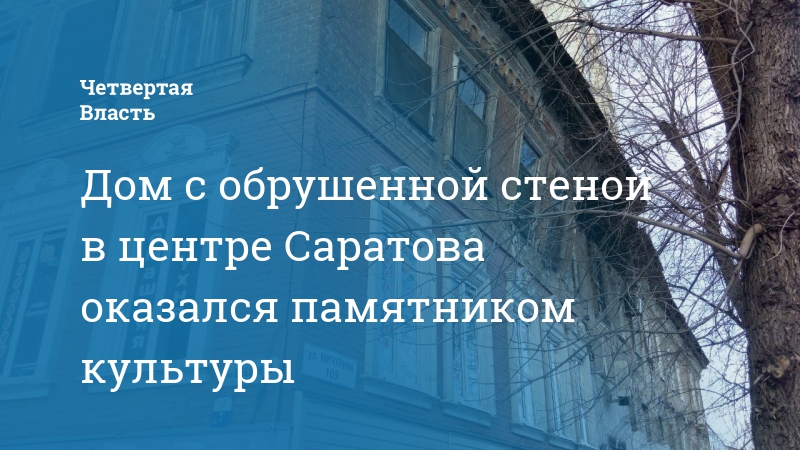Дом с обрушенной стеной в центре Саратова оказался памятником культуры