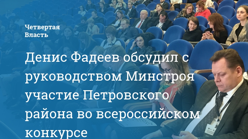 Глава Петровского района Денис Фадеев обсудил с заместителем министра строительства и ЖКХ РФ Максимом Егоровым новые требования и условия Всероссийского конкурса лучших проектов создания комфортной городской среды в малых городах и исторических поселениях 2019 года. Встреча прошла в рамках семинара, приуроченного к началу конкурса, в котором планируется участие Петровского района.