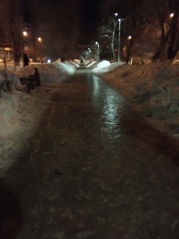 В Саратове участок бульвара по улице Рахова оказался сплошь покрыт льдом. Как сообщают подписчики в сообществе «Саратов Лайф» в социальной сети «ВКонтакте», непроходимым стал промежуток между улицами Кутякова и Посадского.
