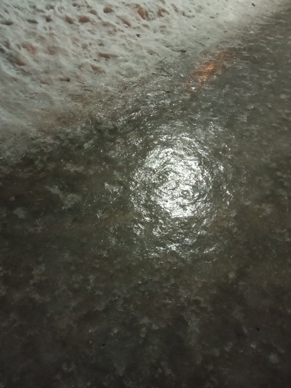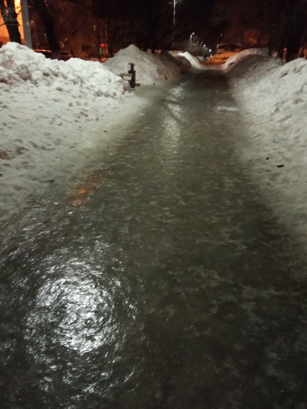 На фотографиях записи, выложенной в сообществе, видно, что бульвар по всей его ширине превратился в сплошной «каток». При этом ни песка, ни какой-либо противоскользящей смеси на дороге не видно.
