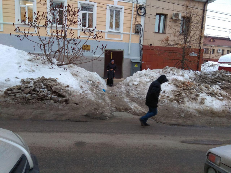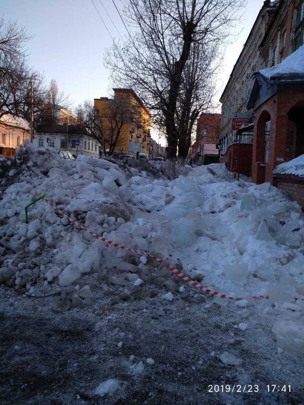 Очевидец Наталия Григорян выложила запись в сообществе «Типичный Саратов» в соцсети «Вконтакте» с фотографиями заваленного снегом и льдом тротуара по улице Горького. Женщина отмечает, что по этой дороге школьники ходят учиться в расположенную рядом Свято-Покровскую гимназию.