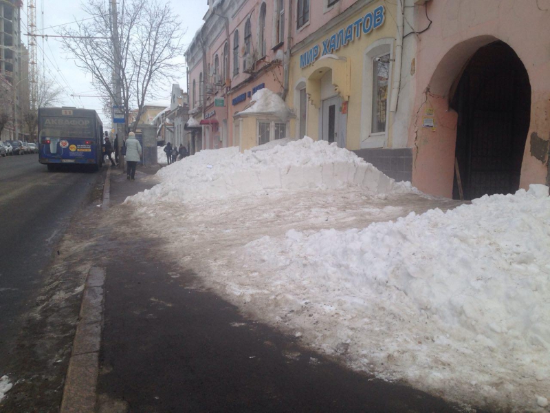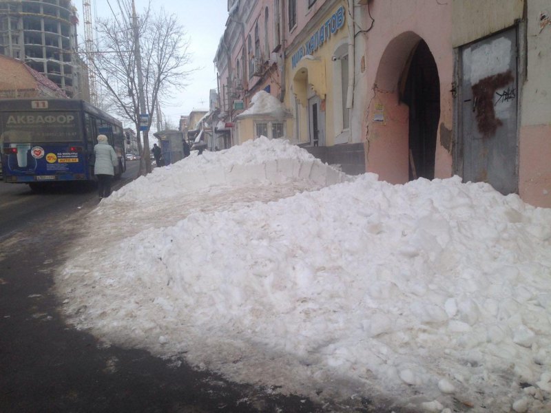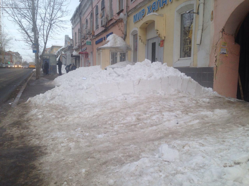 Саратовцы жалуются на заваленные снегом тротуары в центре города