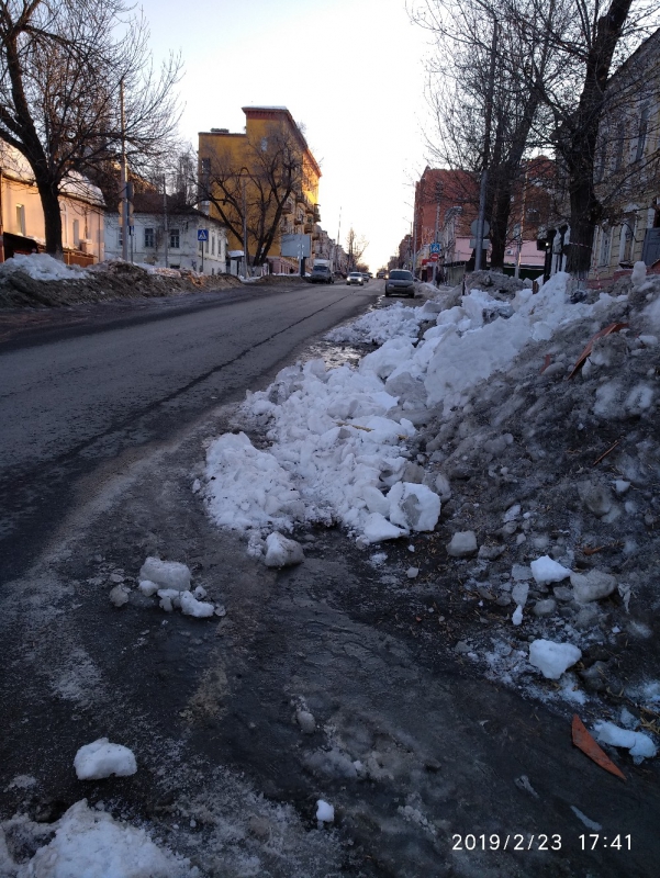 Вторую неделю остается заваленным тротуар по улице Комсомольской между Челюскинцев и Московской. Пройти проблематично по обеим сторонам улицы, в связи с чем пешеходы вынуждены идти по узкой и нечищеной проезжей части, подвергая себя риску. При этом в квартале расположена детская поликлиника №3.