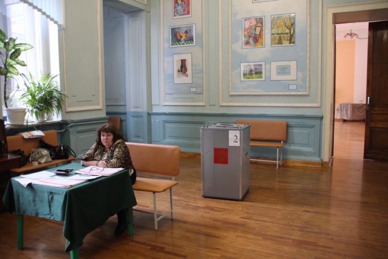 Примерно в полдень на участке №5 в администрации Волжского района был замечен лишь один посетитель. Впрочем, члены избирательной комиссии рассказали, что уже проголосовало около 100 человек и показали списки.
