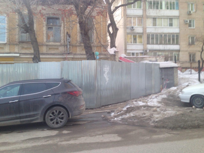 В Саратове оградили здание по адресу Радищева, 5, известное так же, как дом генерала Деникина. Ограждение представляет собой двухметровый забор из металлопрофиля.