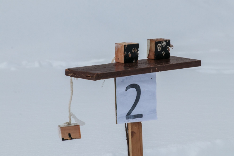 Особенно бурно страсти кипели на открытом воздухе, в первую очередь сопутствуя биатлону. Уйдя со старта на футбольном поле, спортсмены скрывались в зарослях дубов, где петляла 300-метровая трасса, и, совершив круг, вынырнув из рощицы, состязались на огневом рубеже. Требовалось сделать без промаха три выстрела – с 7-и метров из «воздушки» сбить маленькую квадратную мишень и передать эстафету партнеру. «Эстафетной палочкой» служил деревянный муляж автомата. При каждом промахе соревнующиеся пробегали штрафной круг. В этот день участники «Зарницы» стреляли не только из пневматических ружей. Впервые в истории этих игр в Татищевском районе были опробованы пейнтбольные маркеры – красящие шарики густо испятнали мишени на конкурсе «Разведчики». Тут стрельба велась в положении и стоя, и лежа, а еще по условиям конкурса надо было совершить короткий забег и ползком преодолеть полосу препятствий. Задания для «санинструкторов» требовали элементарных медицинских знаний, чтобы правильно уложить условно пострадавшего на носилки, привязать его и закрепить шину бинтом. Приемы такой «первой помощи», тоже выполняемые на время, определялись жребием - выпавшими команде карточками с пометками «Перелом голени», «Рана бедра с кровотечением», «Повреждение коленного сустава».