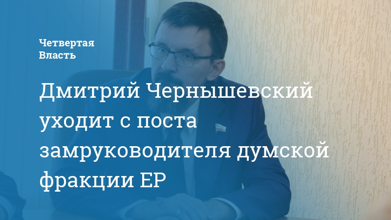 Депутат Саратовской областной думы Дмитрий Чернышевский покидает должность замруководителя фракции «Единая Россия». Об этом он сообщил сегодня, 5 марта, на своей странице в «Фейсбуке».