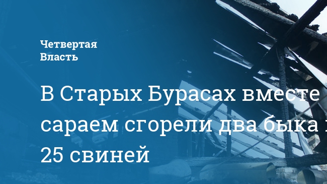 В Старых Бурасах вместе с сараем сгорели два быка и 25 свиней