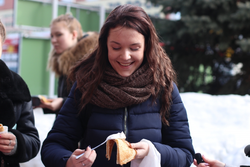 Макаркина Наталия ФЭБиТД 3 курс: «Масленица - мой любимый праздник! Веселые гуляния, горы блинов и, конечно, улыбки людей создают особое предвесеннее настроение! И как же здорово, что в нашем ВУЗе проводятся такие праздники! Спасибо за заряд настроения на оставшийся день и, конечно, за вкуснейшие блины с малиновым джемом!»