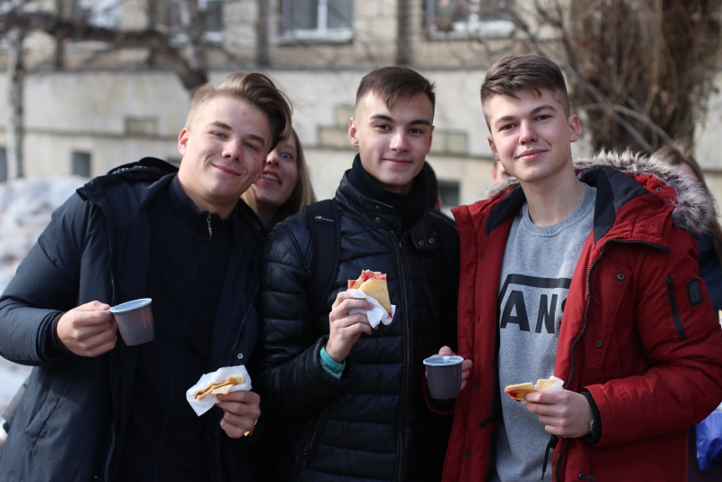 В процессе мероприятия студенты смогли не только поиграть в различные подвижные игры, принять участие в конкурсах, потанцевать и попеть, но и отведать блинов с горячим чаем.