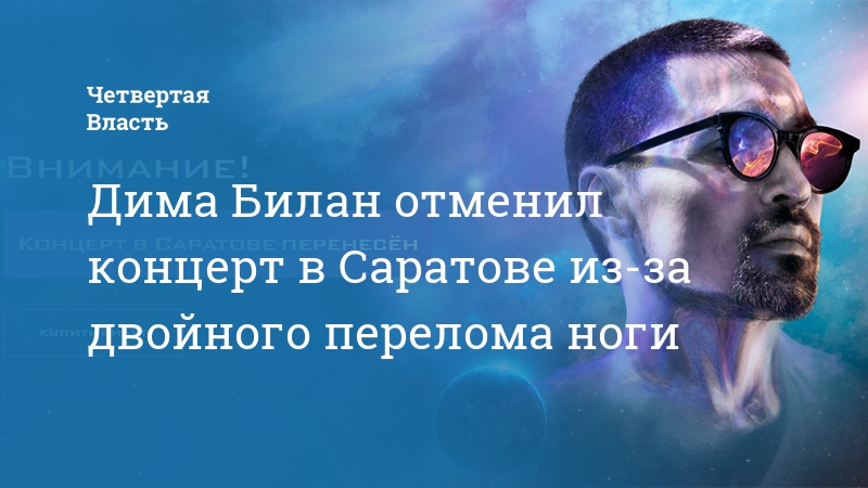 Концерт певца, первого российского победителя конкурса «Евровидение» Димы Билана в Саратове, который должен был состояться 10 марта, отменен. Причиной этого стала травма, полученная в феврале.