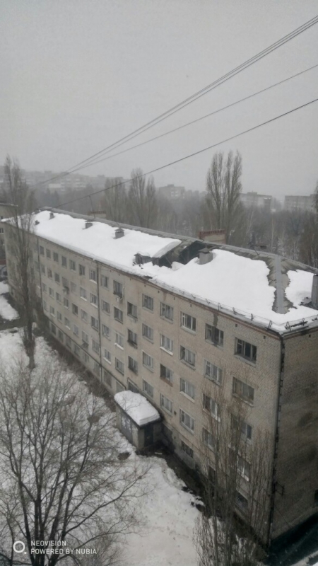 На улице Навашина, 18 (военное общежитие) под тяжестью снега обвалилась часть крыши. Очевидцы сфотографировали огромную дыру в кровле. Информации о пострадавших не поступало.