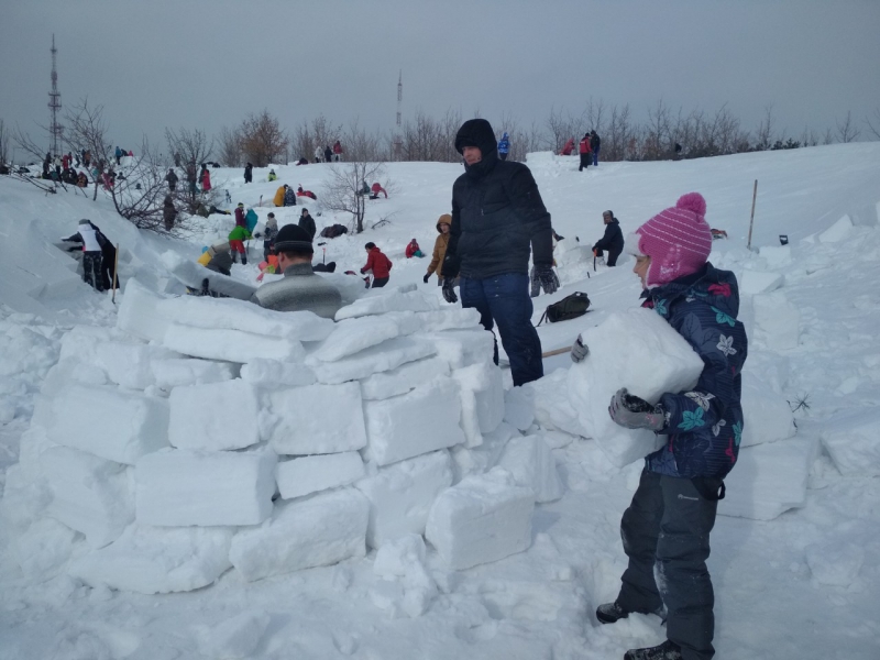В минувшие выходные, 8 марта, на Кумысной поляне состоялся традиционный фестиваль «Саратовское иглу 2019». Весенние соревнования проводятся с 2009 года и в Международный женский день объединили более 200 участников. Правила просты: каждая команда должна возвести строение, наиболее пригодное для проживания в нем. На сооружение эскимосского дома дается всего 3 часа.
