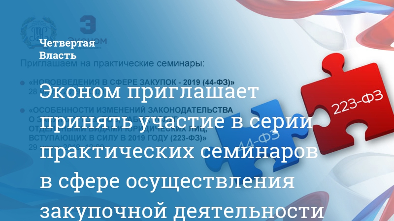 Эконом приглашает всех желающих на практические семинары «Нововведения в сфере закупок – 2019 год» и «Особенности изменений законодательства о закупках товаров, работ, услуг отдельными видами юридических лиц, вступающих в силу в 2019 году».