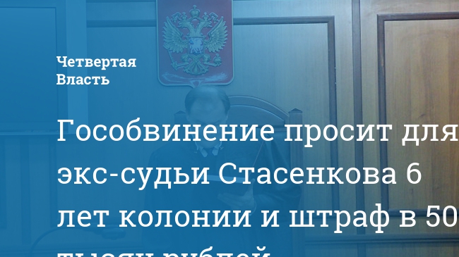 Гособвинение просит для экс-судьи Стасенкова 6 лет колонии и штраф в 500 тысяч рублей
