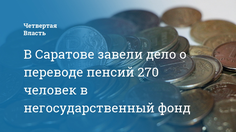 В Саратове возбуждено уголовное дело по факту незаконного перевода денег 270 граждан в негосударственный пенсионный фонд. Об этом «Четвертой Власти» сообщили в пресс-службе региональной прокуратуры.