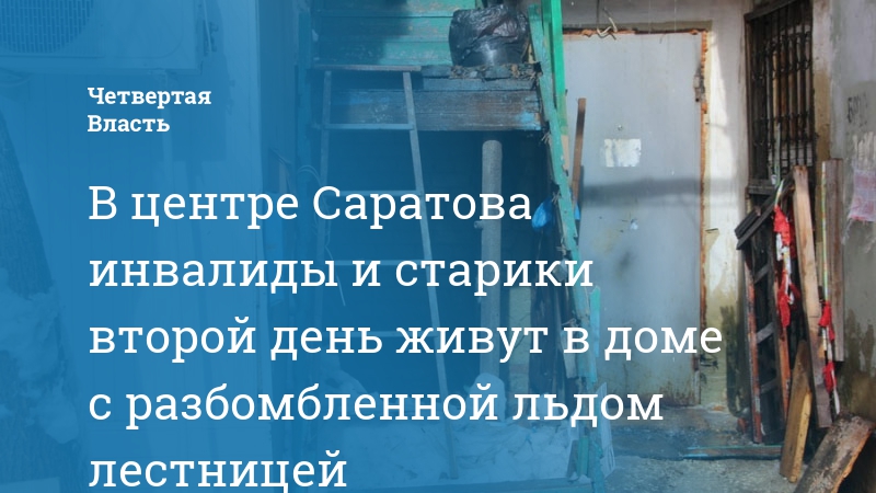В центре Саратова инвалиды и старики второй день живут в доме с разбомбленной льдом лестницей