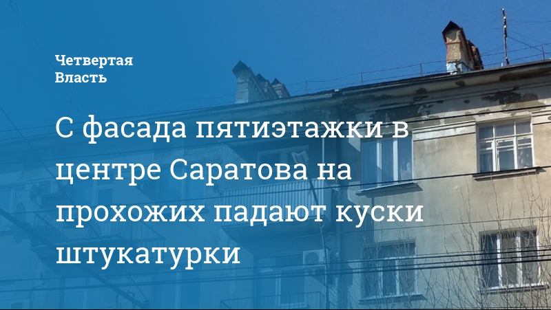 Во Фрунзенском районе Саратова состояние фасада жилого дома угрожает жизни и здоровью прохожих. Это следует из поста, размещенного в соцсетях в группе «Саратов Лайф» очевидцем.