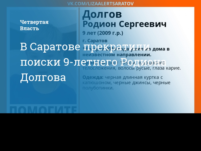 Сегодня, 15 марта, в Саратове найден пропавший 9-летний Родион Долгов. Об этом сообщает поисковый отряд «Лиза Алерт».
