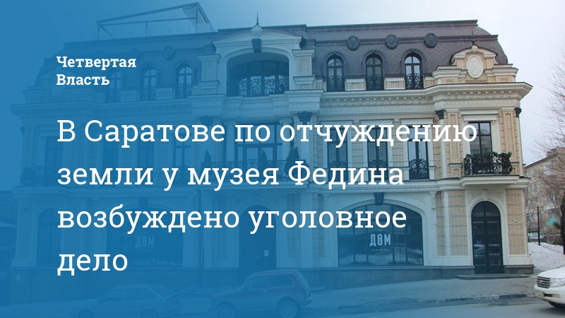 В Саратове сотрудники регионального следственного управления СК РФ приняли решение о возбуждении уголовного дела в связи с отчуждением земельного участка у государственного музея К.А. Федина. Об этом заявил «Четвертой Власти» осведомленный источник в правоохранительных органах.