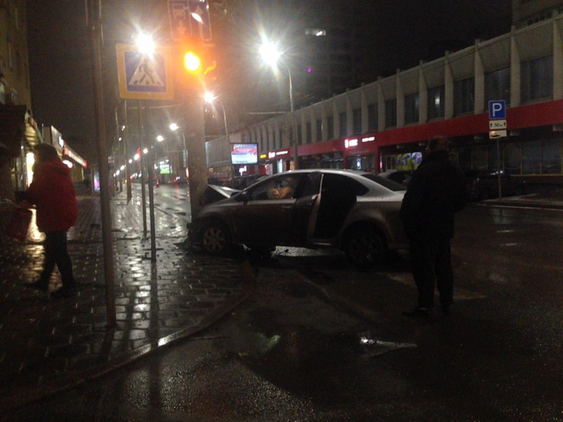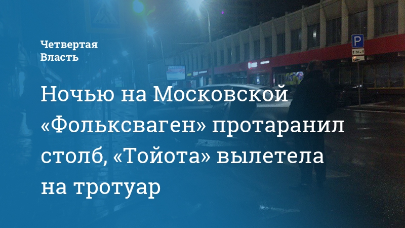 Ночью на Московской «Фольксваген» протаранил столб, «Тойота» вылетела на тротуар