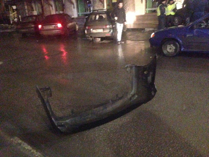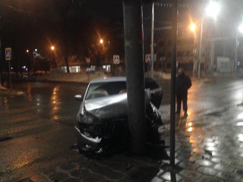 ДТП произошло около 2.00 ночи. По предварительным данным, водитель «Тойоты» двигался по улице Рахова со стороны Большой Казачьей и не уступил дорогу «Фольксвагену Поло», двигающемуся по Московской со стороны улицы Пугачева. В результате столкновения «Тойота» чуть не протаранила фасад ресторана «Улей», съехав на тротуар. «Фольксваген» врезался в фонарный столб, передняя часть автомобиля оказались практически полностью разбита.