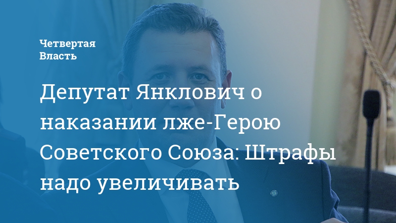 Депутат Янклович о наказании лже-Герою Советского Союза: Штрафы надо увеличивать