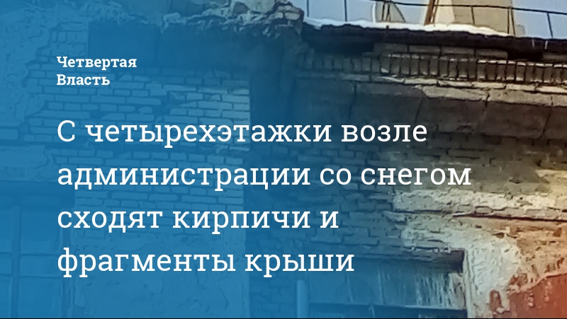 С четырехэтажки возле администрации со снегом сходят кирпичи и фрагменты крыши