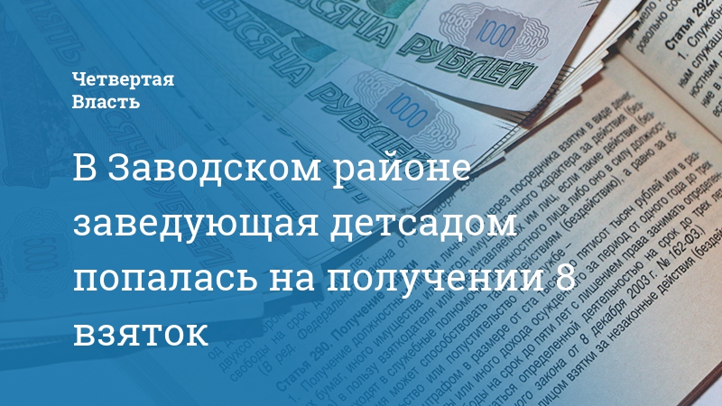 В Заводском районе заведующая детсадом попалась на получении 8 взяток