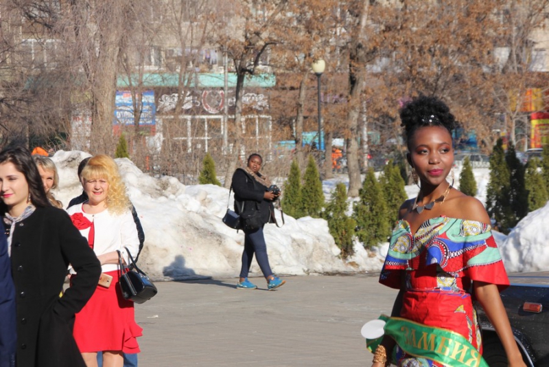 Мероприятие началось с торжественного представления конкурсанток: девушки подъезжали ко входу в театр драмы на раритетных лимузинах «ЗиЛ» и «Чайка». Ведущий называл имя участницы и страну или регион, который она представляет. В это время девушки торжественно проходили по ковровой дорожке к импровизированной фотозоне перед входом в театр, где позировали для камер многочисленных фотографов.
