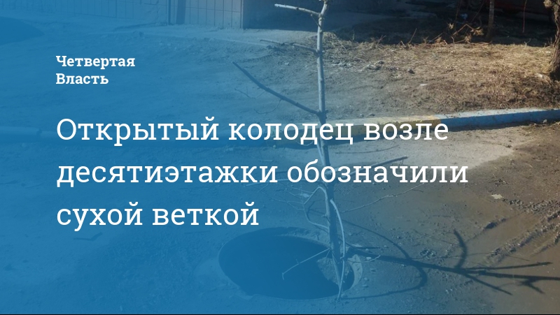 Открытый колодец возле десятиэтажки обозначили сухой веткой