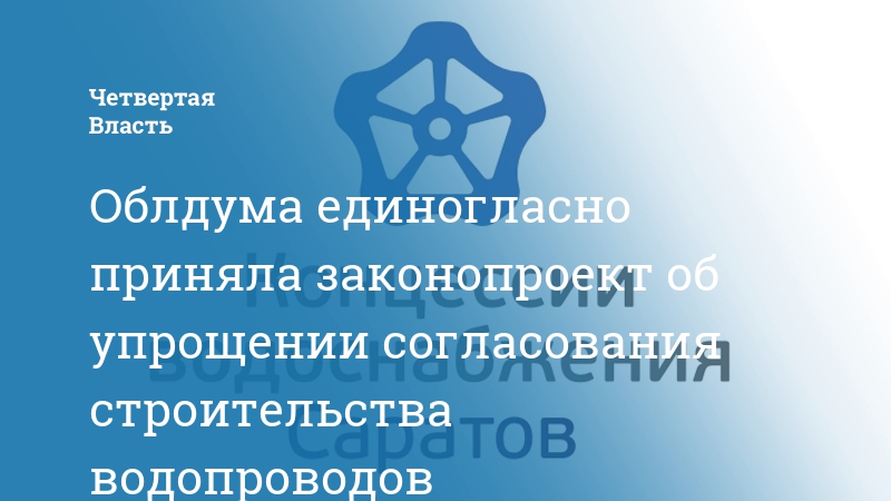Сегодня состоялось заседание Саратовской областной думы, на котором был рассмотрен проект поправок в региональный закон «О регулировании градостроительной деятельности Саратовской области». Изменения связаны с упрощением процедуры согласования строительства водопроводных и канализационных коммуникаций.