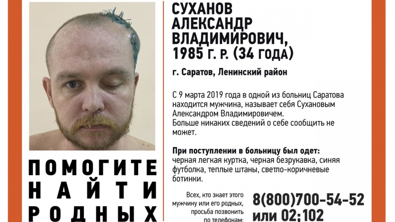 Саратовские волонтеры ищут родственников 34-летнего Александра Суханова