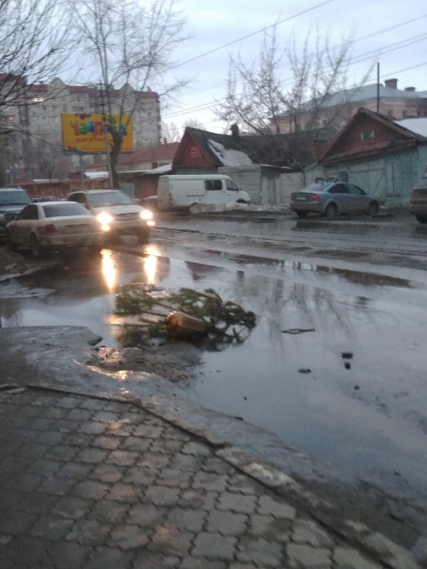 «Сейчас машину эвакуировали, сосед закинул в лужу-яму елку», - написал свидетель случившегося.