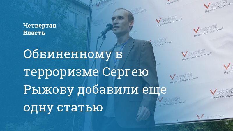 Саратовскому оппозиционеру Сергею Рыжову предъявили окончательное обвинение в попытке террористического акта. Об этом «Четвертой Власти» рассказал его адвокат Игорь Элифханов.
